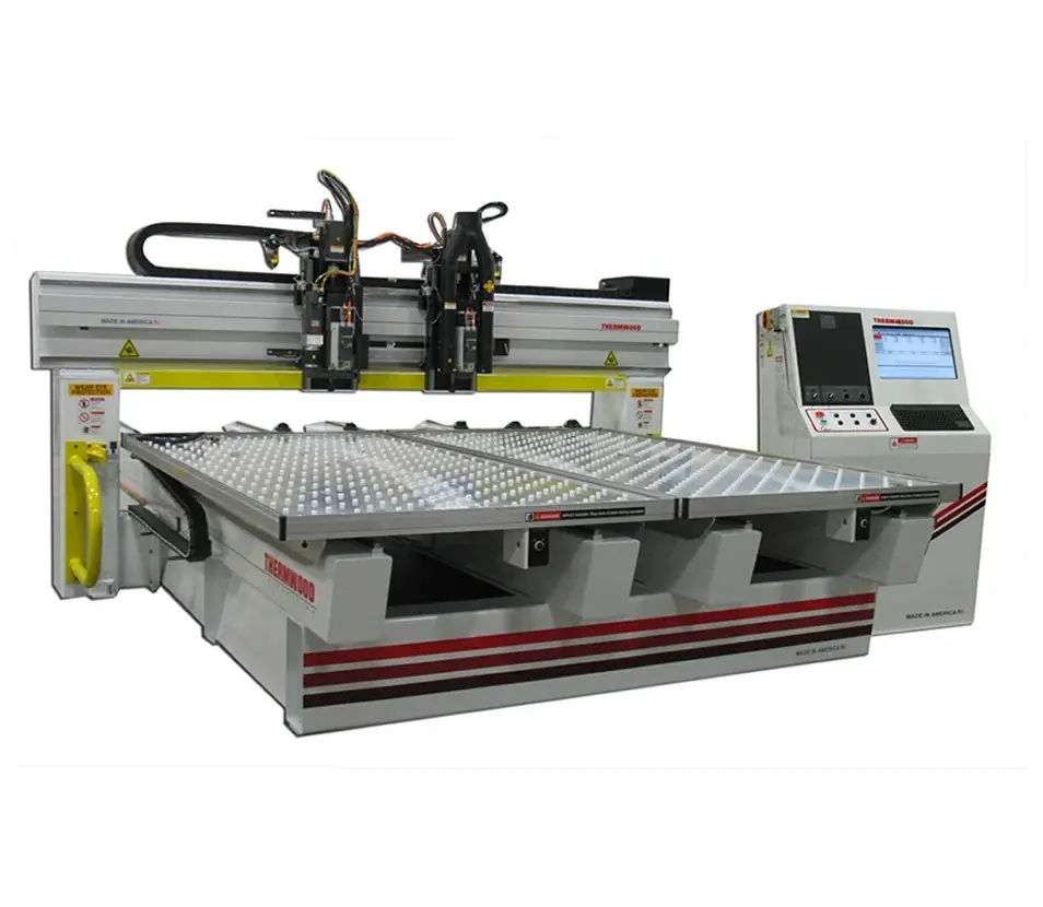 Thermwood has been building CNC Routers for over 50 years. The Thermwood Model 42 is a moving table, fixed gantry, CNC router primarily designed to machine low profile materials such as hardwoods, softwoods, fiberboard (MDF), particleboard, plastics and aluminum. It can also be fitted with our Rotary Playback devices to carve shapes simultaneously.